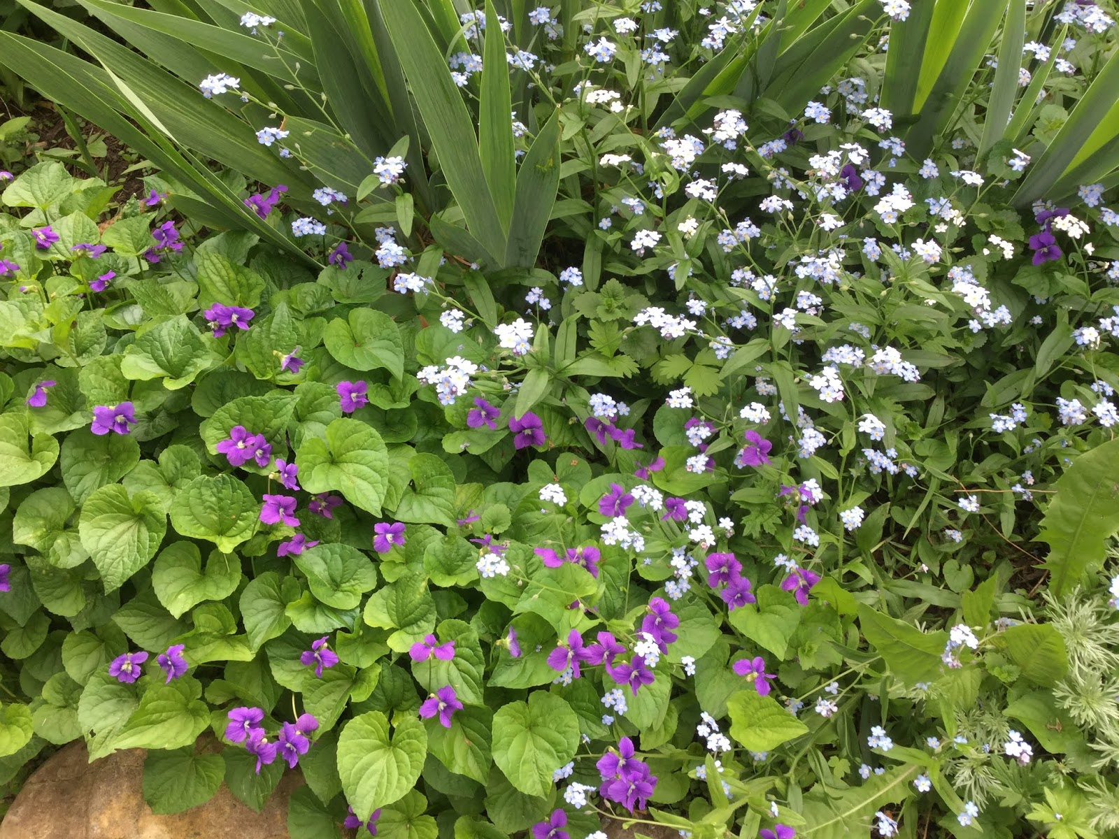 These gorgeous Irises surprised me. I only noticed them when I peeked under some leaves.