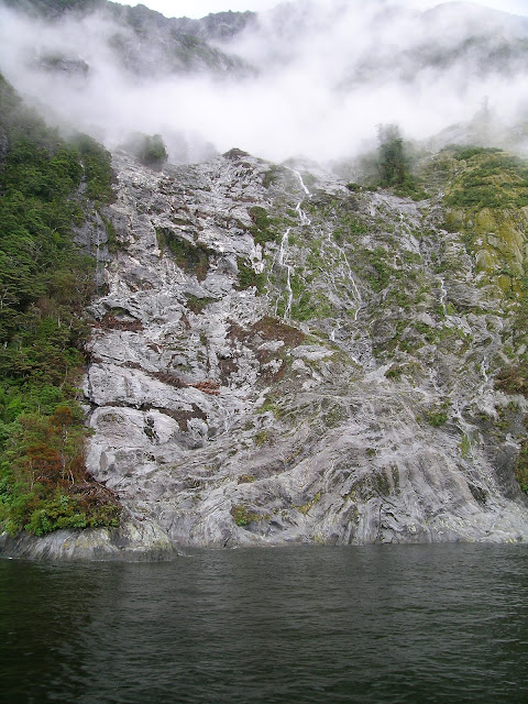 Despite the isolation, there is always a roaring merry go round of noise from the ocean-wind-falls-sea birds. A group of seals stretch and revel in the isolation. The sun breaks through as we head back to the dock for the long bus ride back to the little town Te Anau, which seems like a very remote outpost itself.