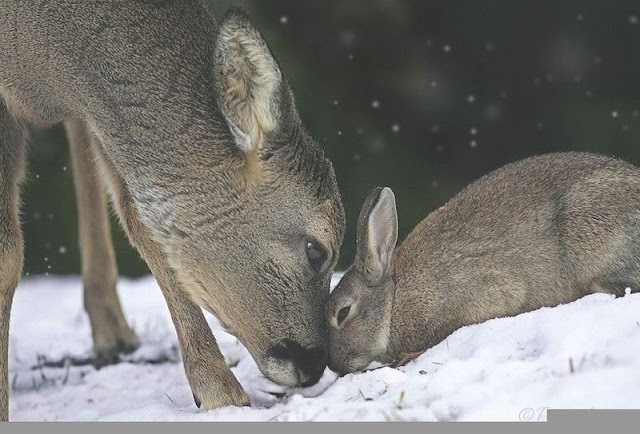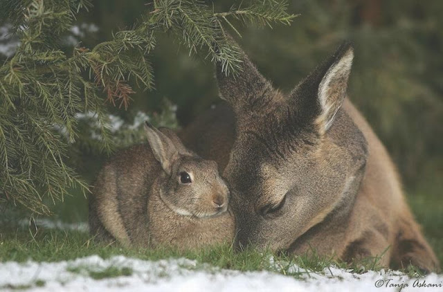 Hunnybee sent me these charming photos of a real life Bambi with his friend Thumper. I did a bit of research about the photographer, wildlife Czech photographer Tanja Askani. There are more wonderful photos of other species on her website.