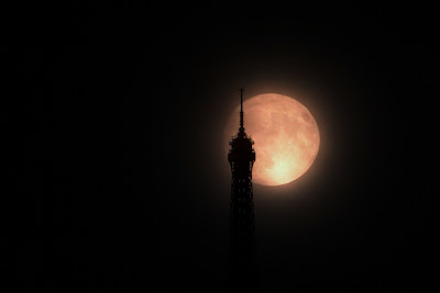 This is some coincidence, but Austin has just sent me this spectacular photo of the Eiffel Tower against the Super Moon: