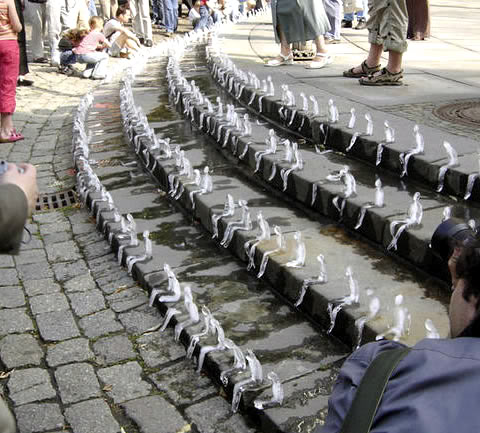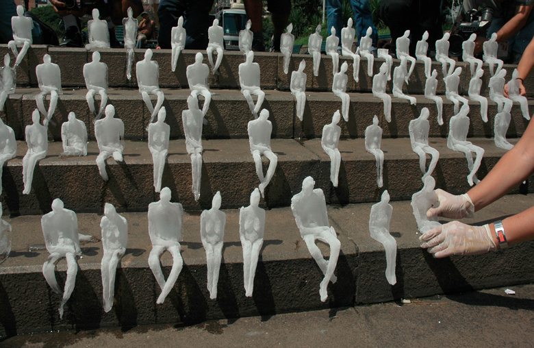 Melting Men is a series of art installations from the Minimum Monument project created by Brazilian artist Nele Azevedo. Since 2005, Azevedo has been setting up her Melting Men in various countries around the world. Although originally intended as a critic of the role of monuments in cities, environmentalists around the world are adopting her work as climate change art.