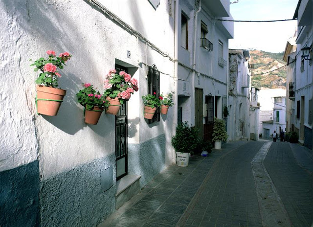 One of my mothers' cousins, Paco, was a salesman for a wine producer of the DenominaciĂ³n de Origen Valdepeñas. His patch covered an area called Las Alpujarras, on the Sierra Nevada. He invited us to go with him on his rounds so we could see the lovely whitewashed houses adorned with geraniums, the narrow streets and all that. So we went.