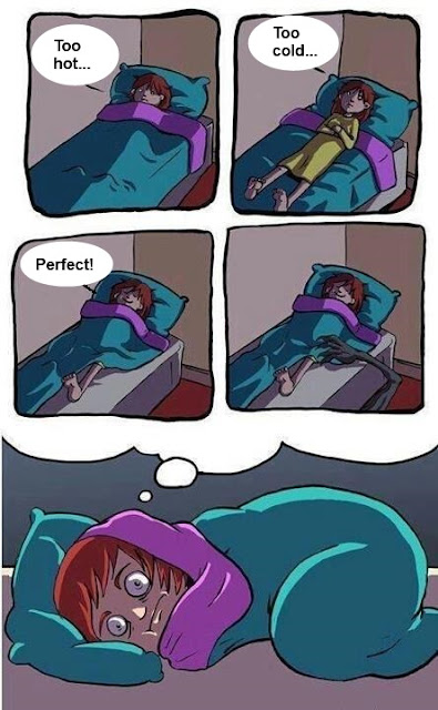 I'm having trouble going to sleep. One leg jumps, my nose makes an annoying fiiin-fonn noise, I have to get up to pee, random hard-to-scratch places itch, you name it. So I decided to laugh about it...