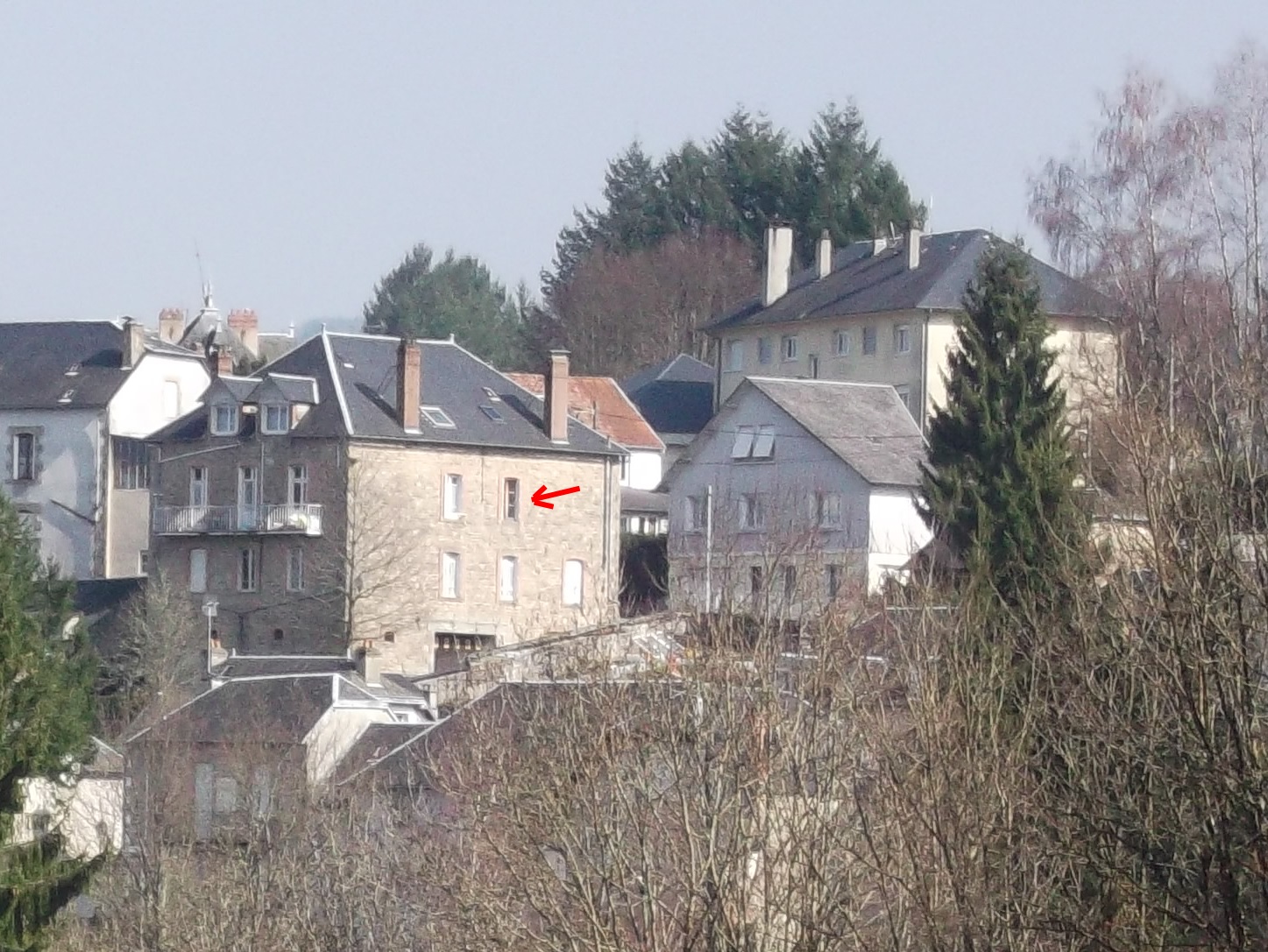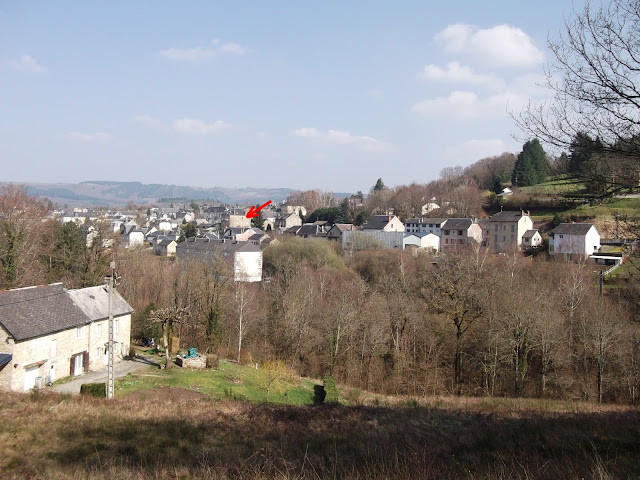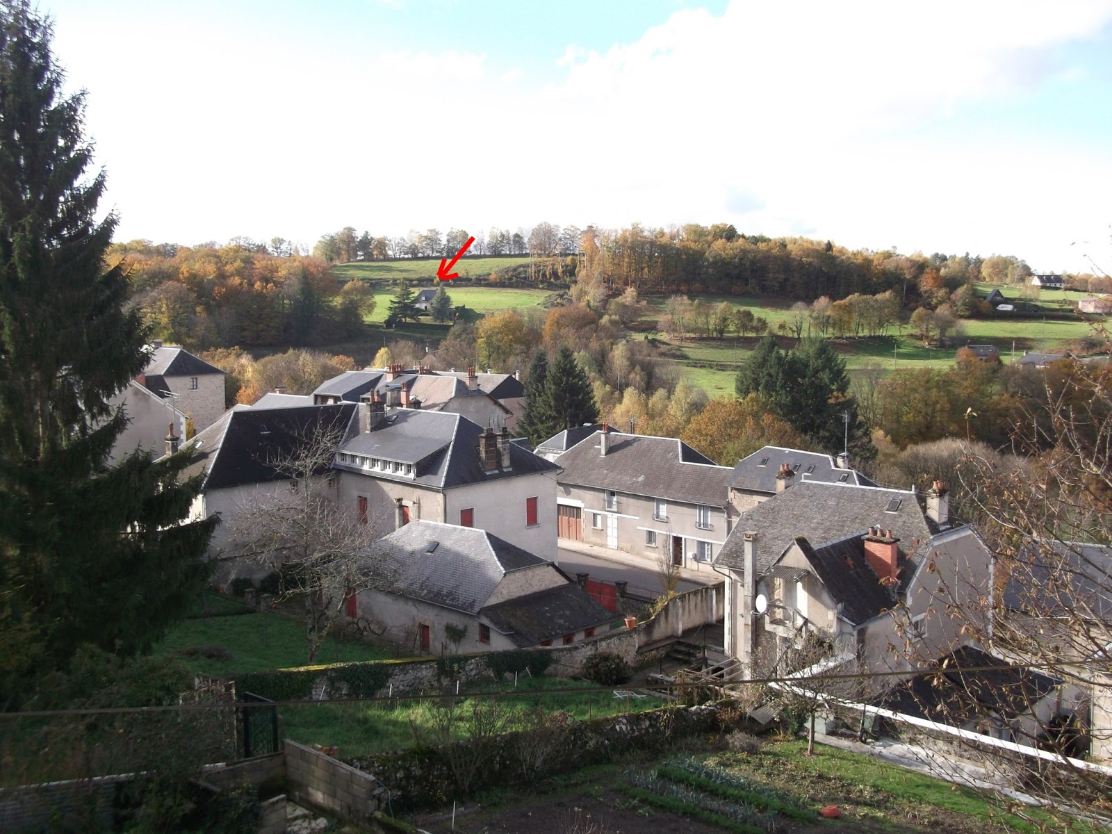 Yesterday we had a lovely sunny day and decided to do something we had been planning for a while. As you know, we're very fond of the view from our kitchen window and there's a house which captured our imaginations (marked with an arrow in the second photo).