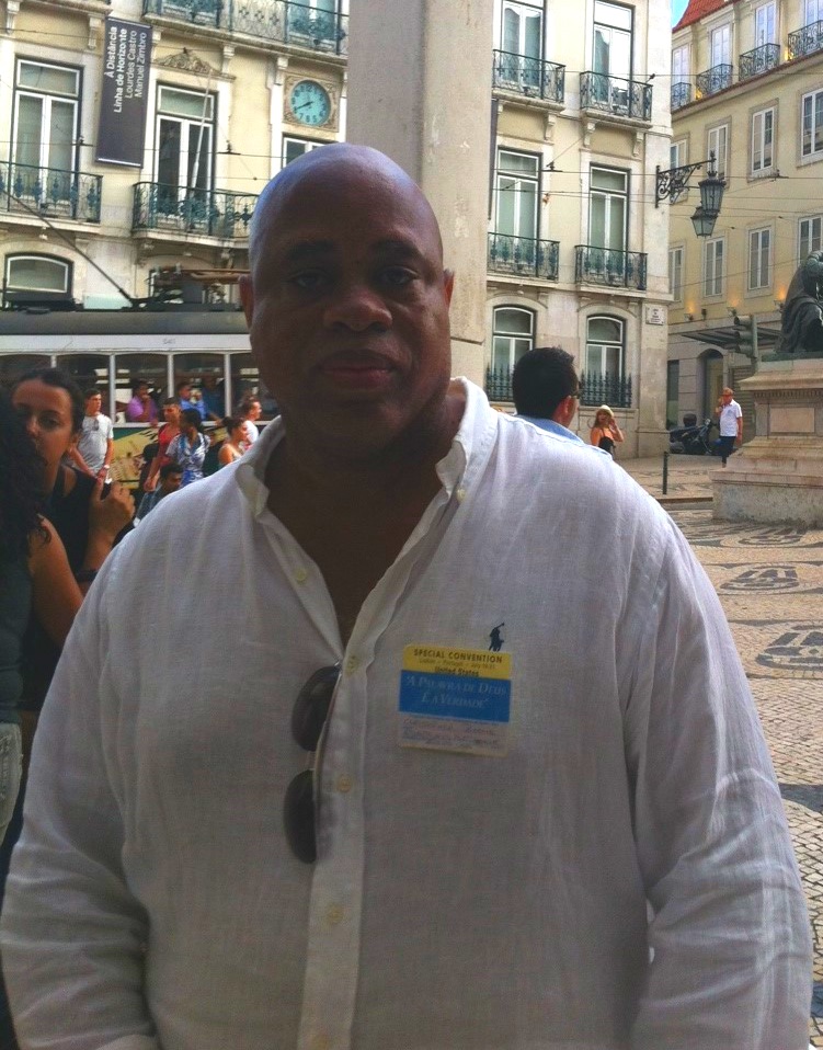 This guy was surrounded by twelve to fifteen women of many nationalities, all very excited to be near him. They were in Lisbon for an evangelical convention and had various inspirational badges: "God's word is the truth," "Together in the Holy Spirit," and others.
