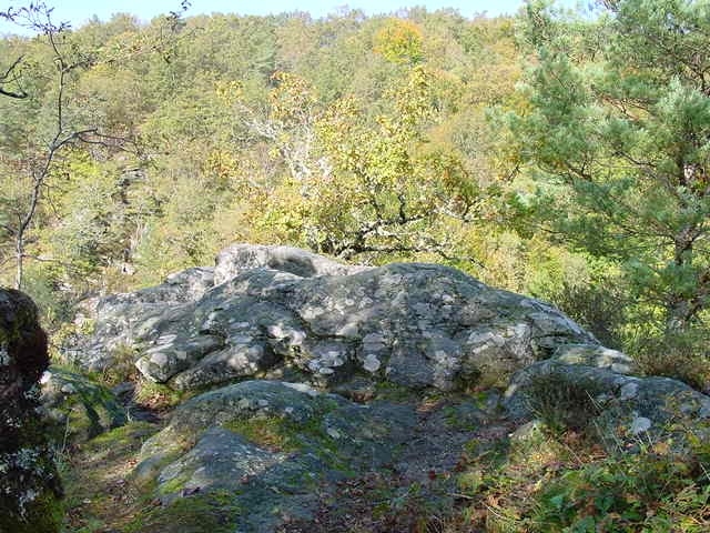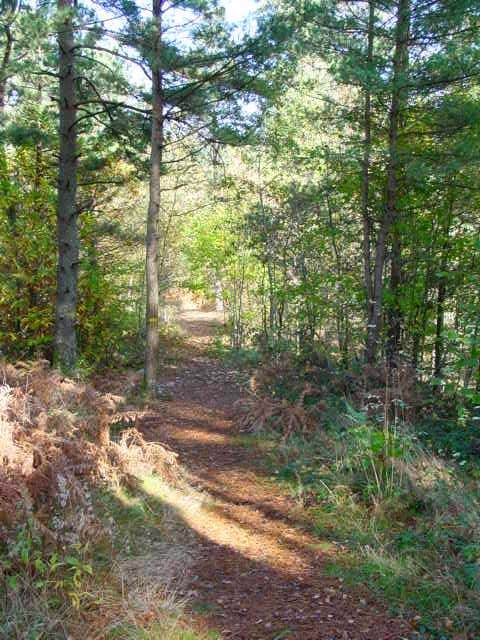 | The path looks innocent, but it's very downhill on the way to the Rocher and quite slippery as well. |