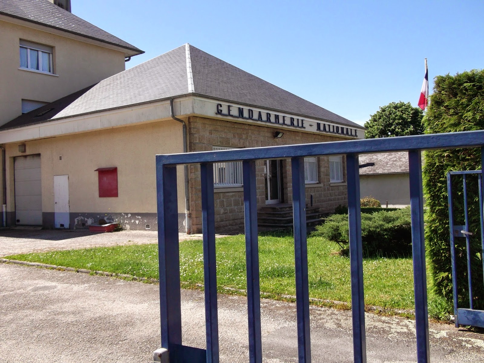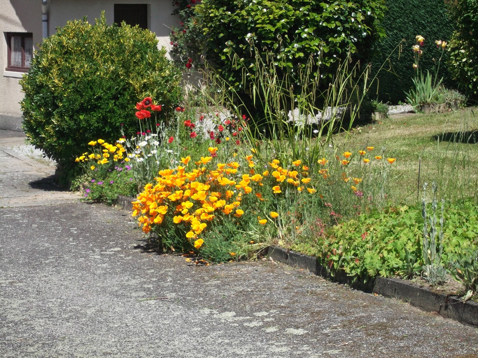 The next three photos are just around the corner from us. We have the gendarmes and the pompiers very nearby... The poppies add some colour to the (non-existent) sidewalk.