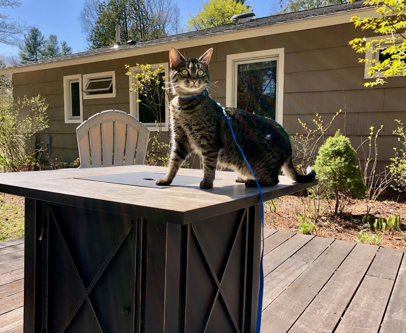 I brought Luxie out to get a bit of fresh air. She wore Little Ray's harness while enjoying the exciting outside world.