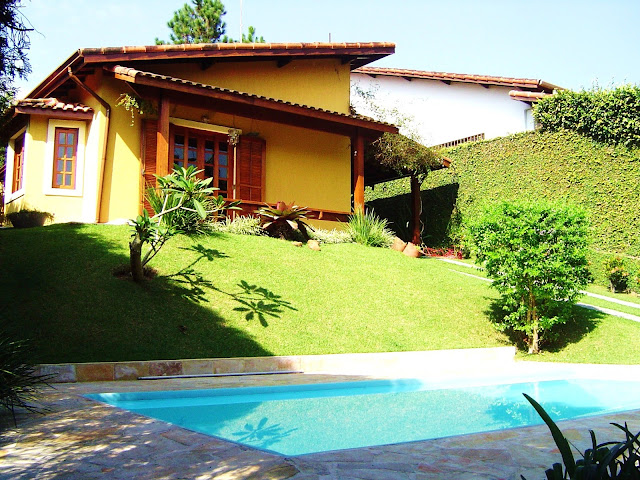 I was going through my pictures when I came across some photos of my sister's house in Brazil. It's small but perfectly formed. She designed it herself and lived in it for many happy years. Alas, she sold it and moved to Miami (all her daughters live there), where she now lives in what can only be described as a box...