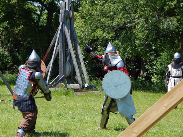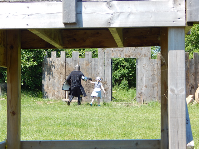 I guess you can’t have a medieval fair without “weapons of war”. I actually enjoyed the Warrior’s Battle. The men were in full armour and they really went at one another with actual weapons - but blunt swords and axes. The funniest part was when two little girls volunteered to be the princesses and they were kidnapped by the Black Knight and taken to the castle. Then came the storming of the castle. I got a little video clip of that. It was a riot!