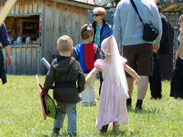 In the marketplace there were tons of things for little princesses and knights, (and big ones also and too!) I think every kid there bought a wooden sword. And then after the jousting they were allowed to come and be knighted by the king.