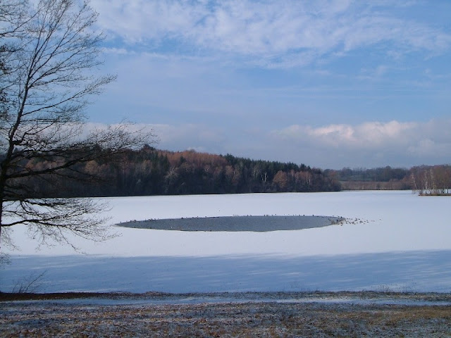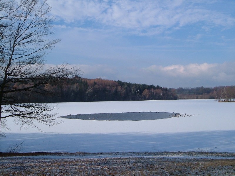 Lac de Bournazel looks just as spectacular in winter. This is an old photo, when the lake was almost entirely frozen: