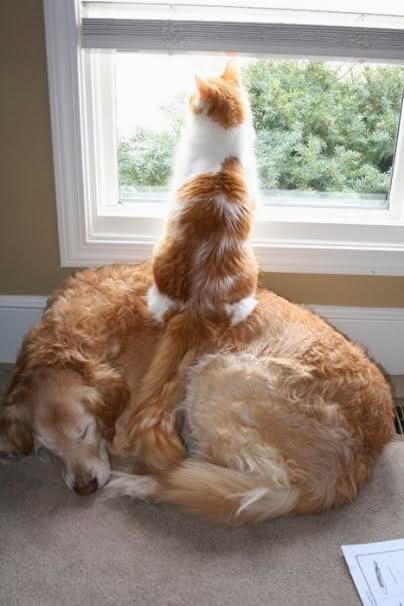 Bob is a very loving, very patient Golden Retriever. Here he is, with his little friends:
